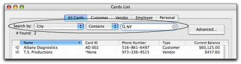 Advanced search filtersYou can use advanced search filters such as the zip code range or identifiers to search for a single card or a group of cards. To do this, in the Cards List window, click Advanced. Enter the relevant filters to narrow your search. Only those cards that meet your search criteria will be displayed.Related topics