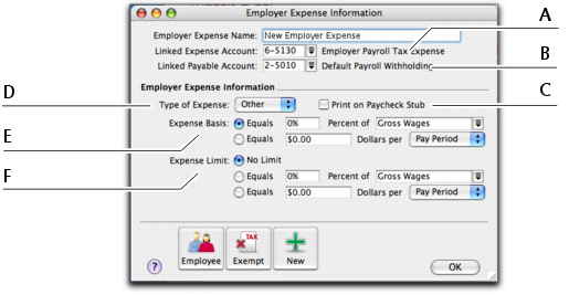 Paying your employees > Creating payroll categories > Employer Expense Information window