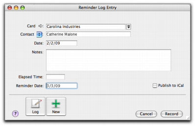 The reminder log enable you to keep a detailed log of all the phone calls you and your contacts make to each other, and any other type of correspondence.
