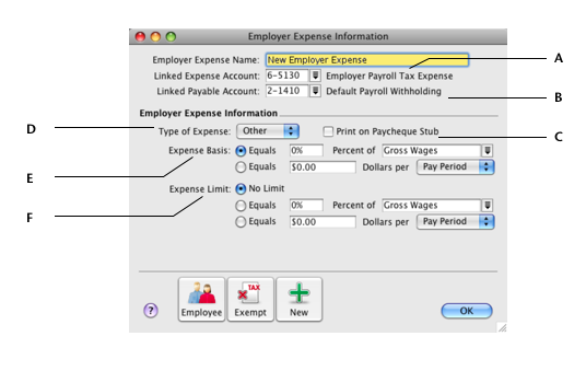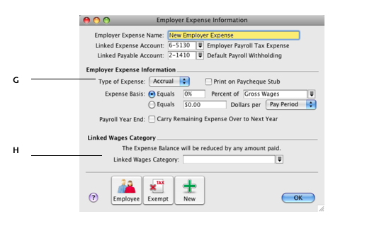 Paying your employees > Creating payroll categories > Employer Expense Information window
