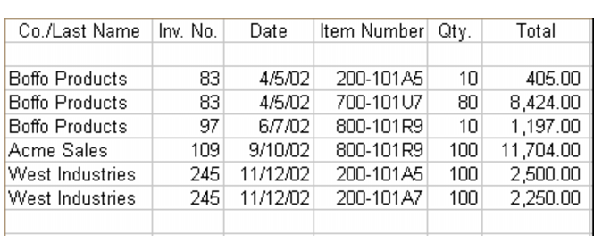 When importing sales, purchases, inventory adjustments and journal entries, a blank line must be entered between each record; that is, there must be a line between each sale, purchase, inventory adjustment or journal entry. The blank line marks the end of the record when it is imported into an company file.