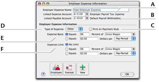 Paying your employees > Creating payroll categories > Employer Expense Information window
