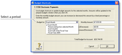 From the Budget for list, select a time period: