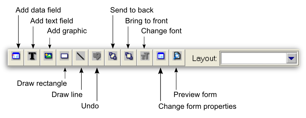 You can add elements to, and change elements on, a form using the tool palette shown below: