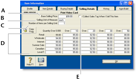 Click the Selling Details tab. The Selling Details view of the Item Information window appears. Complete the fields on this tab as explained below.