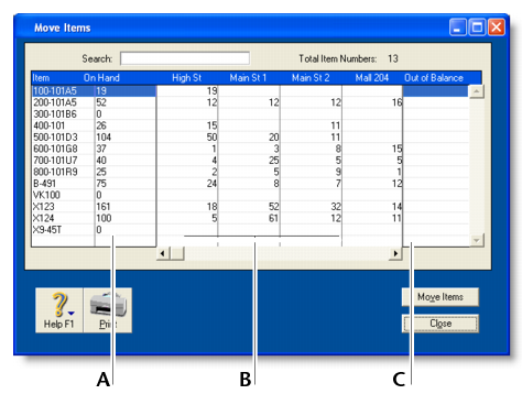 The value in the Out of Balance field must be zero before you can record the movement. That is, the amount in the On Hand column for the item must be equal to the sum of the amounts in your location columns.