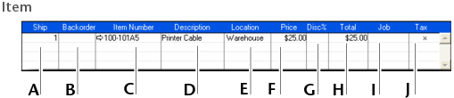 The following illustration briefly describes the line-item entries you can make for a sale with an Item layout and an Invoice status.