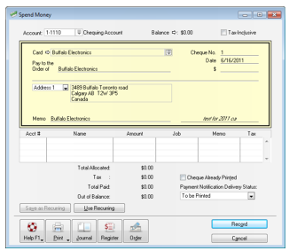 The check interface in AccountEdge has been redesigned making it resemble an actual check, when using the following transactions: