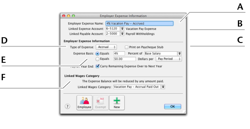 Linked Expense Account is the account to which you are charging this expense. The Account for Employer Expenses you specified when setting up payroll appears as the default.