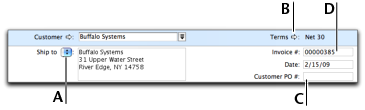 If you want to change a customer’s shipping address, click the down arrow next to the Ship to field and select another address from the customer’s card. Alternatively, type the address in the Ship to field.