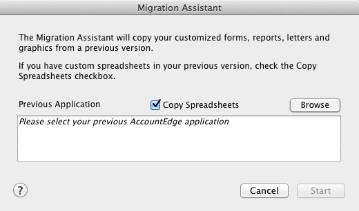 The Migration Assistant feature will help you copy and upgrade the Custom Forms, Custom Reports, Graphics, and Letters and automatically save them to the AccountEdge support folder.