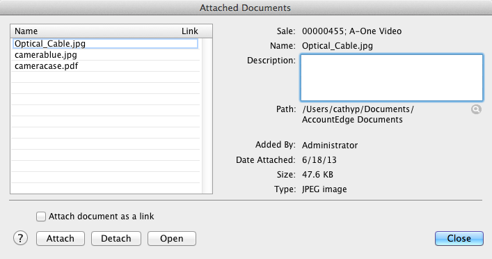 This procedure will create a copy of the document you have selected. If you wish to make a link to the original source, select Attach document as a link in this window.