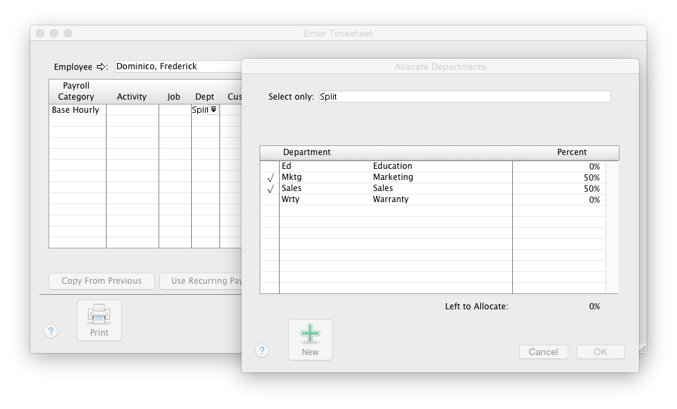 Enter all necessary information and click in the Dept column. The Allocate Departments window appears.