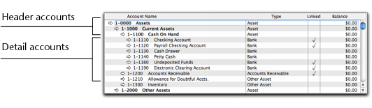 Click Down to group the account with the header located above it.