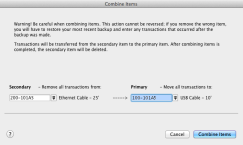 The primary item appears under the Primary - Move all transactions to list. If necessary, you can choose another primary item from the list.