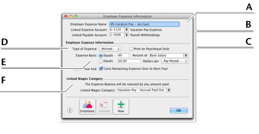 Linked Expense Account is the account to which you are charging this expense. The Account for Employer Expenses you specified when setting up payroll appears as the default.