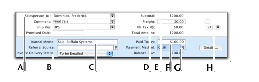 The fields that appear at the bottom of the Sales window depend on the type of sale you are creating.