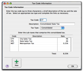 This tax type is used for taxes that are made up of two or more tax codes or sub-taxes. You would use this code if, for example, the 8% tax rate you record on sales is the combined total of a 5% local sales tax and a 3% goods & services sales tax rate. For more information see below