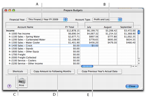You can use the Prepare Budgets window to enter budget amounts for each month of the current or next financial year. If you want to quickly enter budget amounts for a group of months, you can use the Budget Shortcuts window.As the year progresses, you can choose to either adjust budget figures or leave them unchanged.