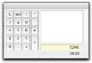 A calculator tool is available to simplify calculating and entering numeric data, including money amounts, item quantities and units. The calculator is available from every window where you enter numeric data. Pressing = (equals) or the Spacebar when the cursor is in a numeric data field displays the calculator. In the calculator, enter your calculation and then press Return. The result appears in the numeric data field.