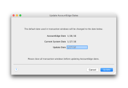 Go to the File menu at any command center and select Update AccountEdge Dates. The Update AccountEdge Dates window will appear.