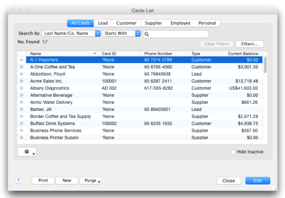 on various windows including Cards, Items, Retainers and Jobs Lists to filter the inactive cards and items from the list.