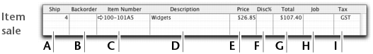 One row in the scrolling list is one line item of the transaction. You can enter as many line items for a sale as you want. The fields that appear in the scrolling list will depend on the layout you are using.