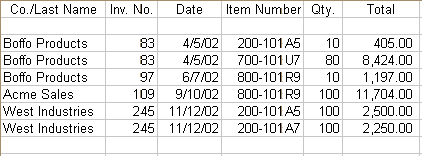 The following illustration shows the same import file with blank lines inserted between the records. Each sale will be viewed separately and four sales will be imported.