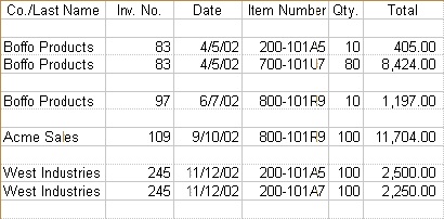 The following illustration shows the same import file with blank lines inserted between the records. Each sale will be viewed separately and four sales will be imported.