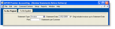 Go to the Sales command center and click Print/Email Statements. The Review Statements Before Delivery window appears.