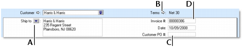 If you want to change a customer’s shipping address, click the down arrow next to the Ship to field and select another address from the customer’s card. Alternatively, type the address in the Ship to field. Click the zoom arrow () to alter the credit terms for this sale only. Note that if you want to change the credit terms for all future sales to this customer, you must make that change on the Selling Details tab of the customer’s card.