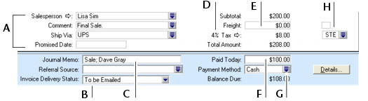 Task 4: Enter additional information about the saleThe fields that appear at the bottom of the Sales window depend on the type of sale you are creating.