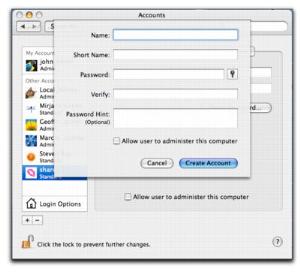 5 If the user is not an administrator, deselect the Allow user to administer this computer option in the Security tab.A new user account called share is created. The home folder of the share user is located at /Users/share and contains a folder called Public, that is, /Users/share/Public. This Public folder is where you will place new company files so that they can be accessed by any workstation on the network.