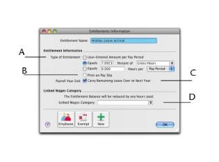 Paying your employees > Creating payroll categories > Entitlements Information window