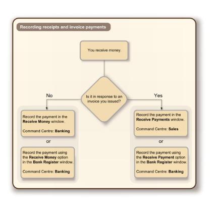 The options for recording receipts and invoice payments are summarised in the following diagram.