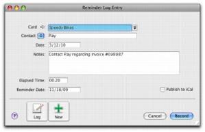 The reminder log enables you to keep a detailed log of all the phone calls you and your contacts make to each other, and any other type of correspondence.