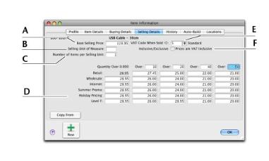 If you want to indicate that all prices on the Selling Details tab are VAT inclusive, select the Prices are VAT Inclusive option. If the prices are VAT exclusive, deselect this option.