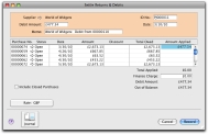 Select the debit you want to apply and click Apply to Purchase. The Settle Returns & Debits window appears, listing all open purchases that you have made from the supplier.