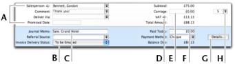 The fields that appear at the bottom of the Sales window depend on the type of sale you are creating.