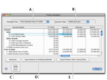 You can use the Prepare Budgets window to enter budget amounts for each month of the current or next financial year. If you want to quickly enter budget amounts for a group of months, you can use the Budget Shortcuts window.