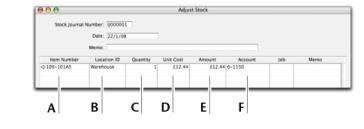 Enter the item number for the item you want to adjust. To do this, click in the Item Number column, press tab and then select the item from the list that appears.