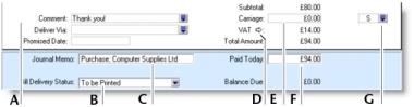If there are any charges for carriage, select the VAT code for them.