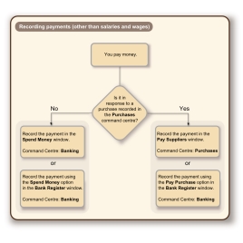 You can also make payments to suppliers in the Bank Register window, especially if you have several purchases to pay and do not need to record detailed information for each payment. When you use the Bank Register window to make supplier payments, the entire payment is automatically allocated to the oldest purchase first. For more information, see Entering transactions in the Bank Register window.