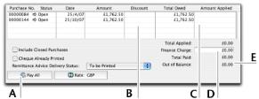 Use Pay All if you are settling your account in full. The total payment amount appears in the Amount field and the individual payment amounts are applied to each open purchase.