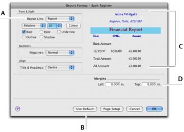You can modify the look of the report by choosing different font styles, sizes, colours, alignments and effects, and by changing the report’s page margins.