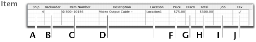 The following illustration briefly describes the line-item entries you can make for a sale with an Item layout and an Invoice status.