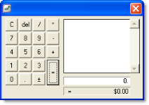 A calculator is available to simplify calculating and entering numeric data, including money amounts, item quantities and units. The calculator is available from every window where you can enter numeric data.
