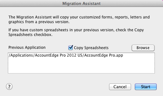 The Migration Assistant feature will help you copy and upgrade the Custom Forms, Custom Reports, Graphics, and Letters and automatically save them to the AccountEdge support folder.