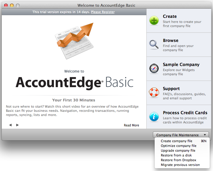 You can now restore a company file directly from the Welcome Window. Restoring a back up copy of a company file from the welcome window instead of having to open another company file makes this process much faster and easier.