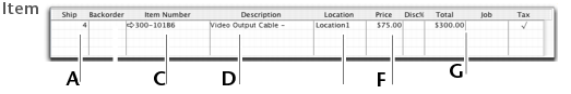 One row in the scrolling list is one line item of the transaction. You can enter as many line items for a sale as you want. The fields that appear in the scrolling list differ depending on the layout you are using.